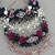 Die Perlelemente sind im miss lillys hats Atelier per Hand gefädelt worden und jedes einzelne Teil wurde händisch, mit silbernen Draht auf einen Haarreif aufgebracht. In minutiöser Kleinstarbeit wird jedes Perlchen einzeln aufgefädelt und zu Elementen zusammengefügt. Echte Handwerkskunst, die extrem viel Zeit erfordert.