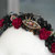 Dieser aufwendig gearbeitete, goldene Haarreif, ist mit hochwertigen dunkelroten gefassten Kristallen besetzt.