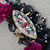 Die Perlelemente sind hier im Atelier per Hand gefädelt worden und jedes einzelne Teil wurde händisch, mit schwarzem Draht auf einen Haarreif aufgebracht. In minutiöser Kleinstarbeit wird jedes Perlchen einzeln aufgefädelt und zu Elementen zusammengefügt. Ein absolutes Einzelstück, das wie ein Schmuckstück seine Trägerin schmücken und begleiten wird. Echte Handwerkskunst, die extrem viel Zeit erfordert.